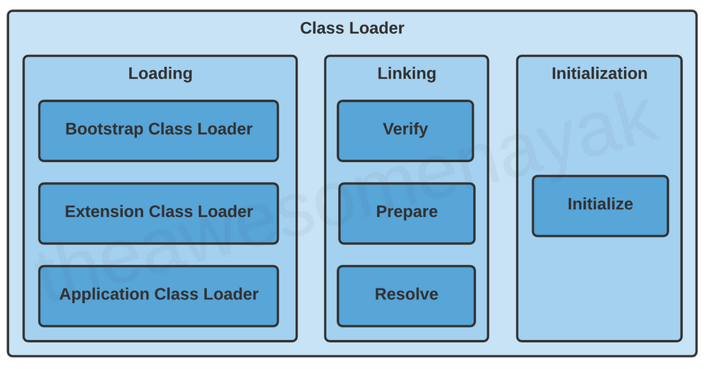类的加载指的是将类的.class文件中的二进制数据读入到内存中,将其放在运行时数据区的方法区内,然后在堆区创建一个 java.lang.Class对象,用来封装类在方法区内的数据结构。类的加载的最终产品是位于堆区中的 Class对象, Class对象封装了类在方法区内的数据结构,并且向Java程序员提供了访问方法区内的数据结构的接口。